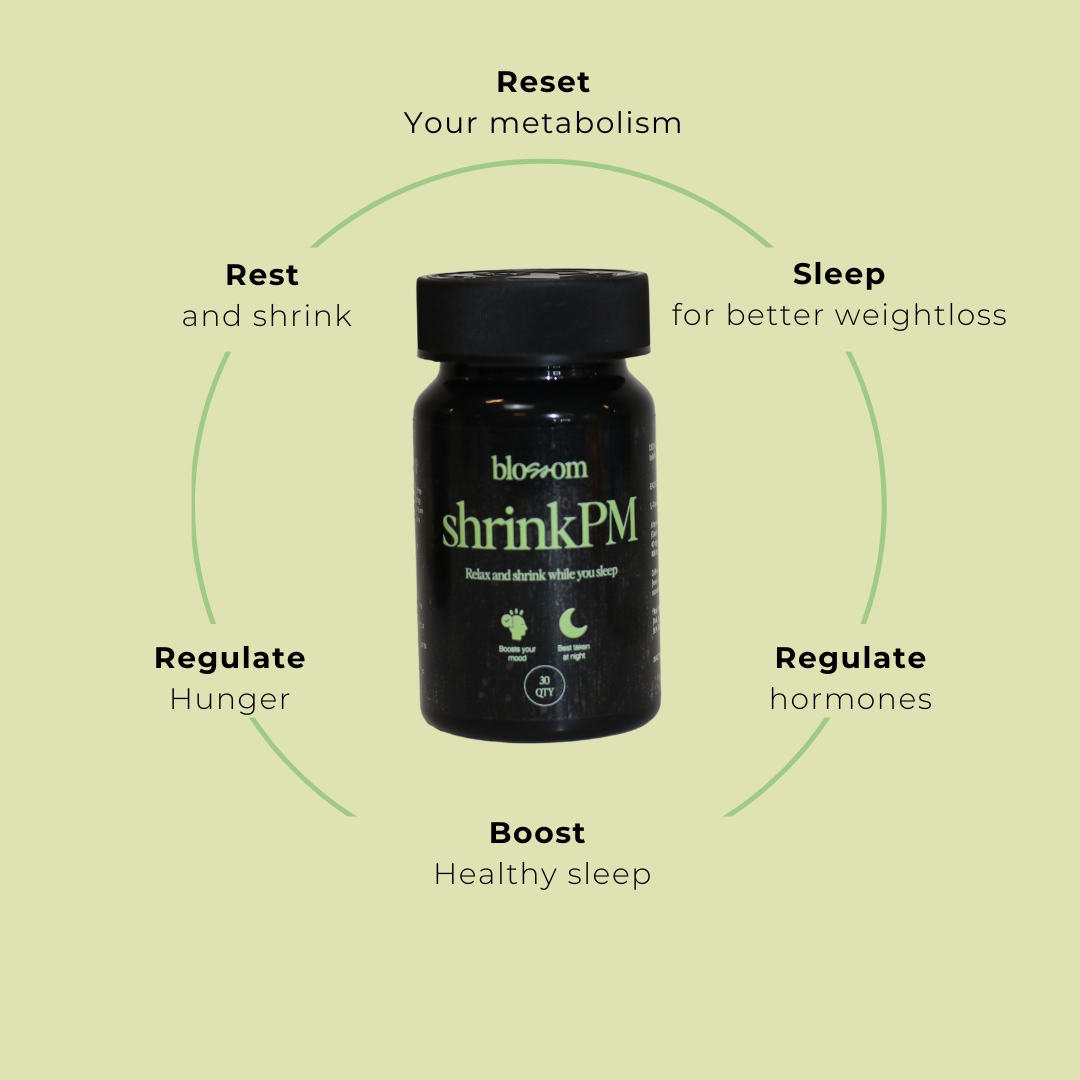 Sleep is essential to regulating the hormones that affect hunger and appetite. Poor sleep can lower your metabolism, making it harder to burn calories. Establishing healthy sleep habits can support your weight loss efforts which is why ShrinkPM is especially formulated not only to help you relax too dreamland but also helps you burn fat while you are sleeping.